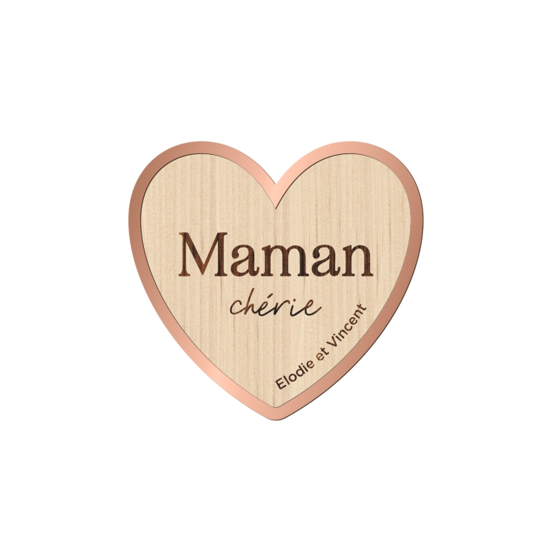 Pour la fête des mères, personnalisez ce joli magnet en forme de coeur réalisé en bois et contour plexiglas miroir. Une petite attention qui fait toujours son effet ! Le magnet est personnalisable avec les prénoms des enfants (en option).