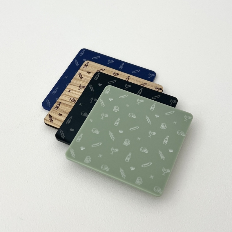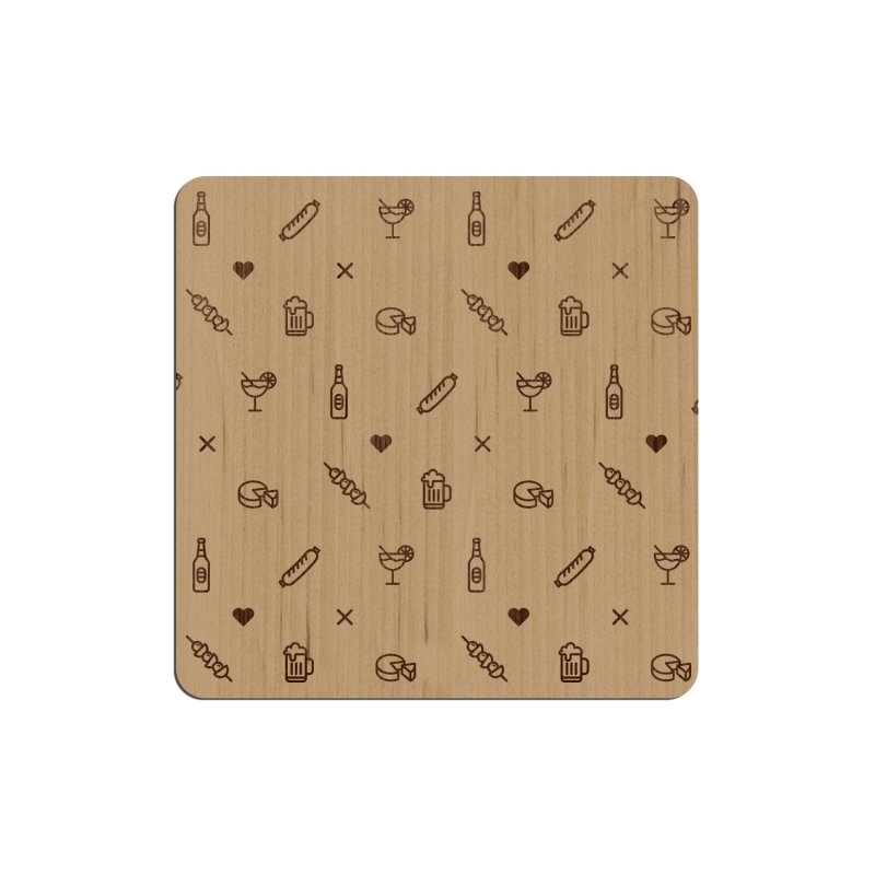 De chouettes dessous de verre en bois plaqué ou en plexiglas pour vous accompagner dans vos apéros entre amis ou en famille ! On adore le graphisme du sous-bock rempli de pictogrammes qui représentent l'apéritif (saucisson, bière, fromage, brochette, chope...).