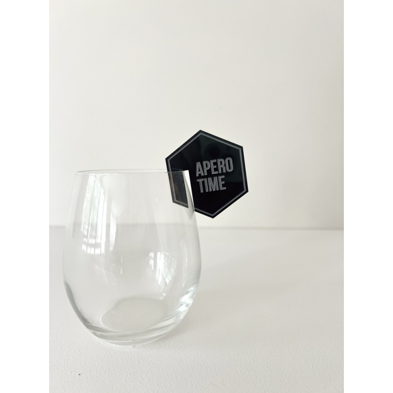 Joli marque-verre en forme d'hexagone et avec le message gravé "APERO TIME". Un petit accessoire pour pimper vos verres à l'heure de l'apéro.