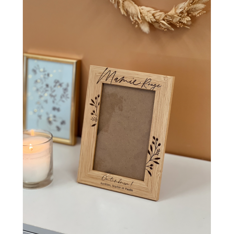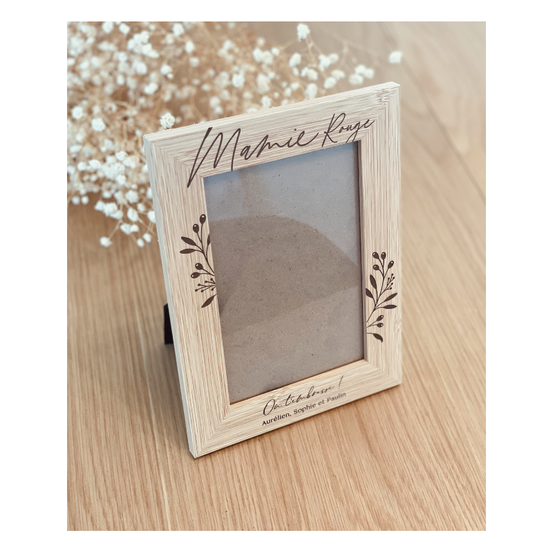 Offrez à votre grand-mère ce merveilleux cadre photo personnalisé en cadeau pour sa fête ou pour son anniversaire. Il sera finement gravé du surnom de mamie ainsi que du prénom de ses petits-enfants, vous n’aurez plus qu’à y ajouter une jolie photo de famille pour en faire un souvenir original et unique.