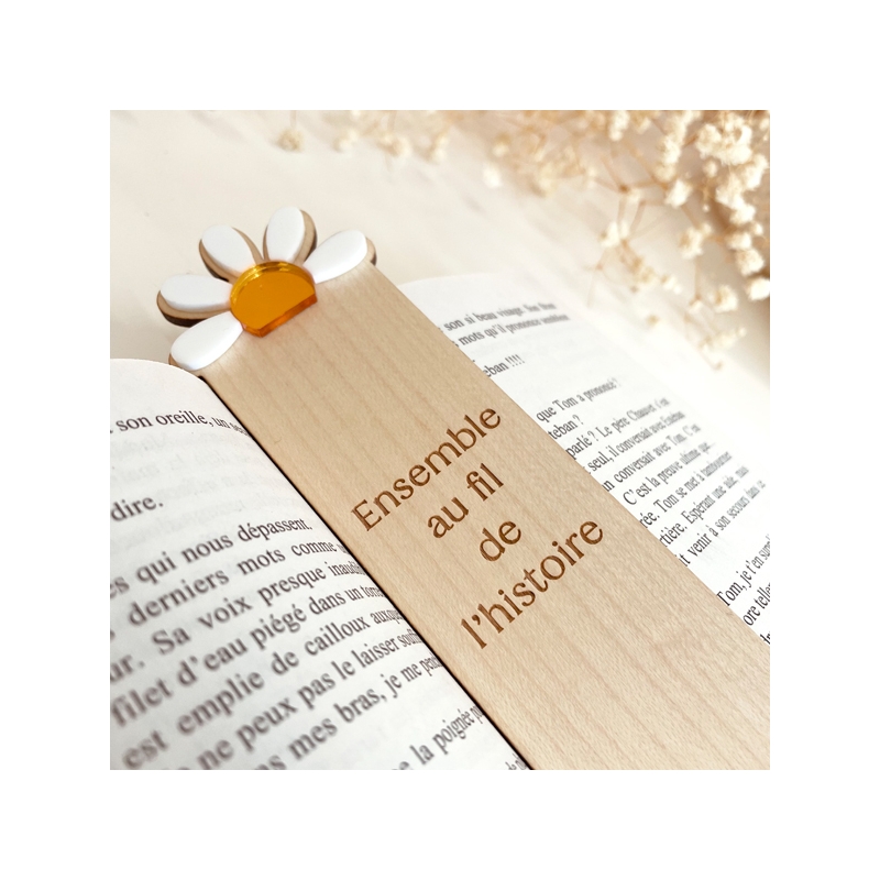 Vous allez adorer ce joli marque-page personnalisé en bois avec sa marguerite haute en couleurs qui dépasse du livre, ainsi que sa petite breloque en forme de feuille vert pastel. Un cadeau utile et original à personnaliser avec le ou les prénoms des petit-enfants, ainsi qu'un petit mot.