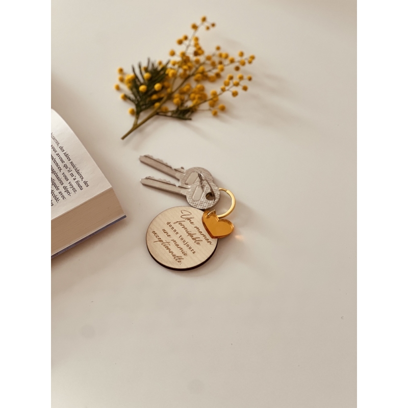 La commande du porte-clé comprend la personnalisation au verso avec le texte et les prénoms de votre choix, ainsi que sa fabrication.