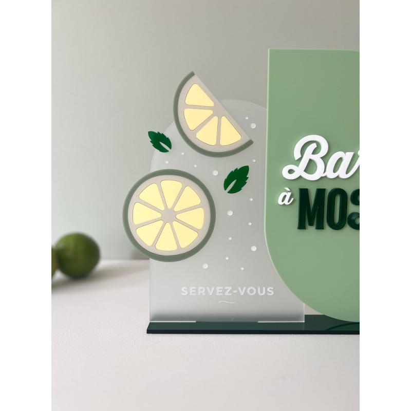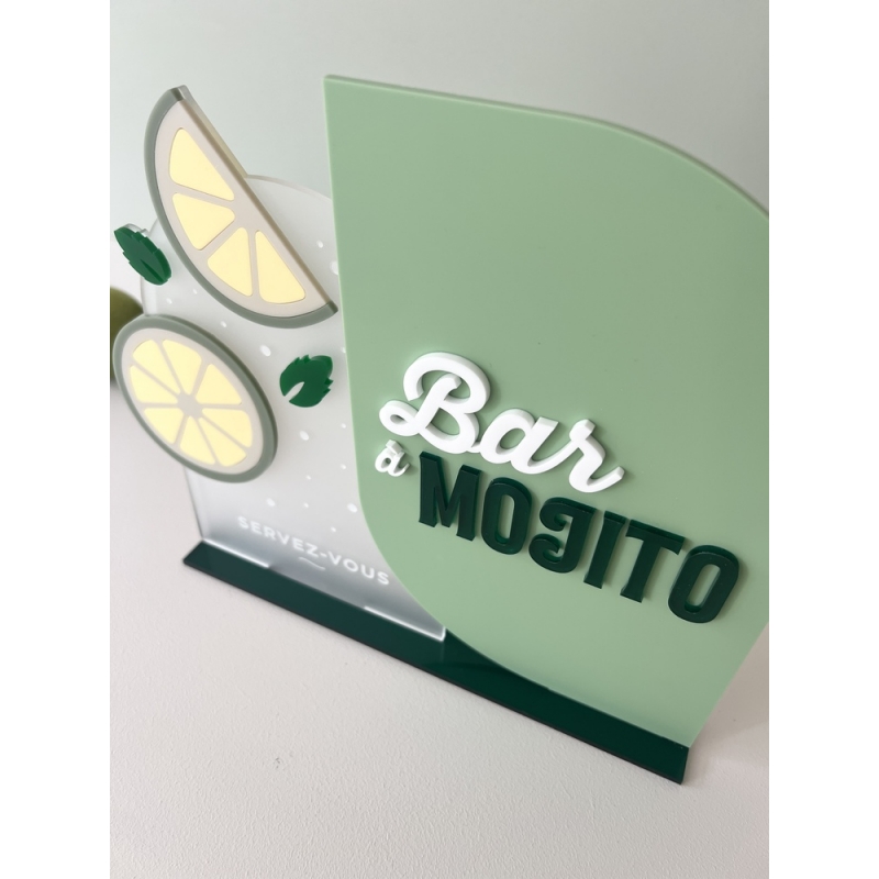 Pour votre mariage ou un anniversaire, ajoutez une touche colorée et fun à votre bar à mojito grâce à ce joli panneau sur socle. Cette signalétique indiquera clairement votre intention à vos invités par rapport aux boissons proposées (mojiot ou virgin mojito) et décorera le bar à merveille !