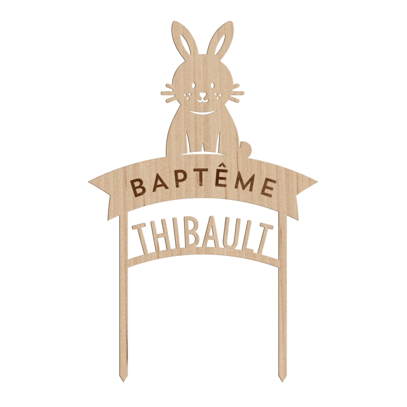 Cake topper personnalisé lapin baptême - Print Your Love