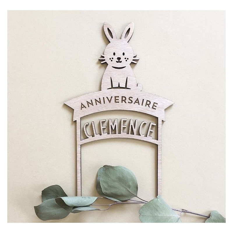 Laissez-vous séduire par ce cake topper en bois personnalisable avec le prénom de votre enfant. Son graphisme se mettra en accord avec votre évènement grâce à la possibilité de choisir l'inscription que vous souhaitez : "anniversaire" ou "baptême".