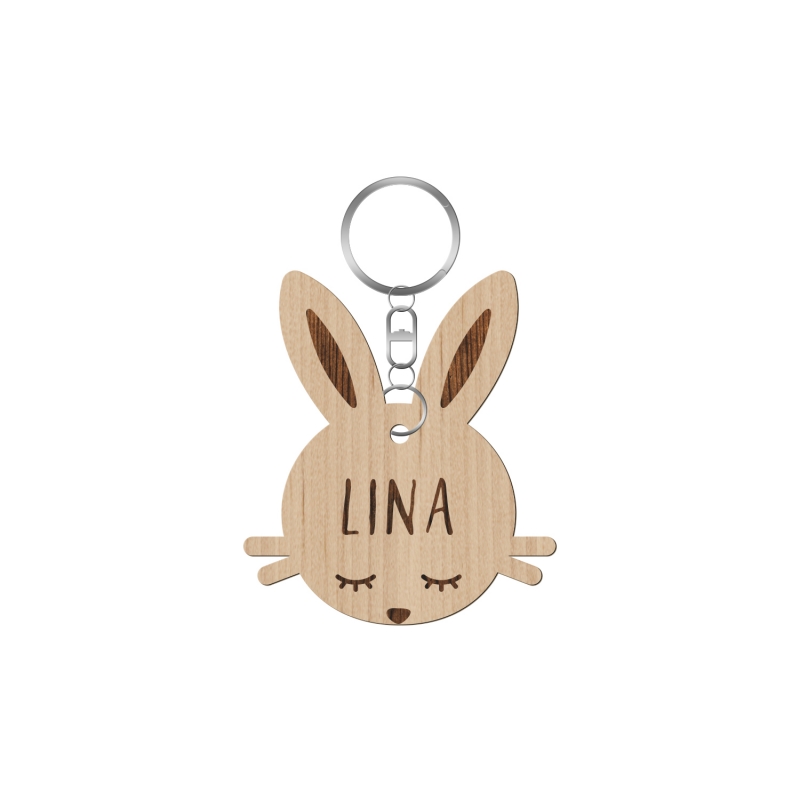 Naissance : Porte-clés lapin personnalisé en bois - Print Your Love