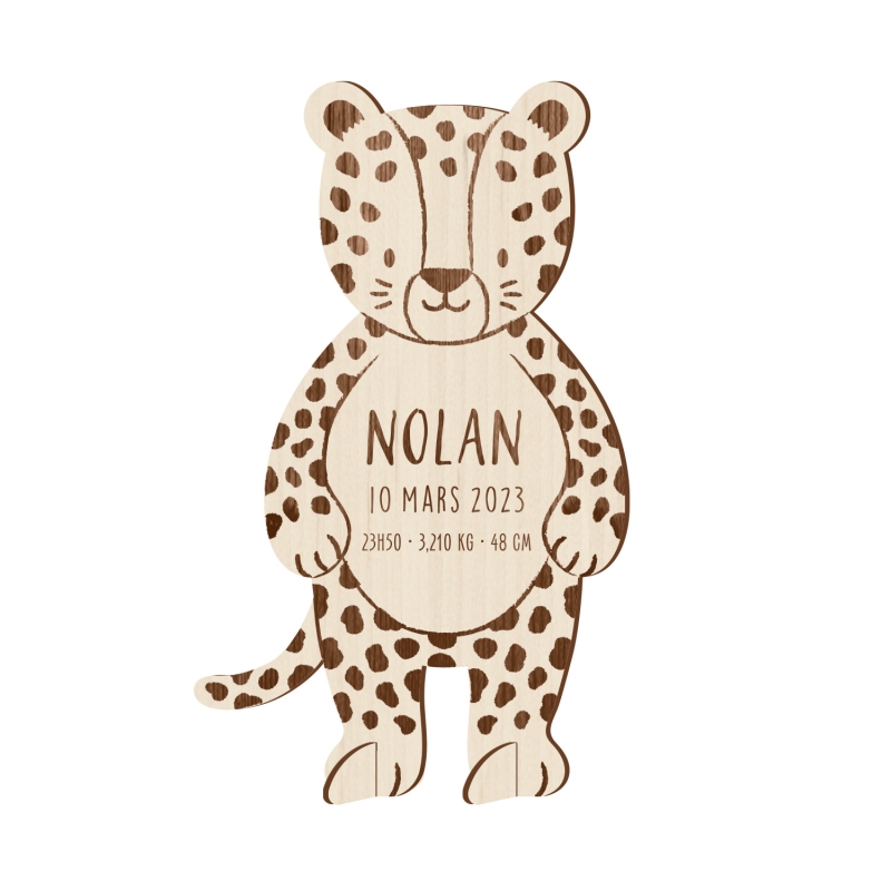 Personnalisez ces mignons petits léopards en bois pour annoncer la naissance de votre enfant. Vos proches vont adorer recevoir ces faire-part en bois en kit qui leur permettront d'avoir une vraie décoration personnalisée en souvenir de la naissance de votre enfant !