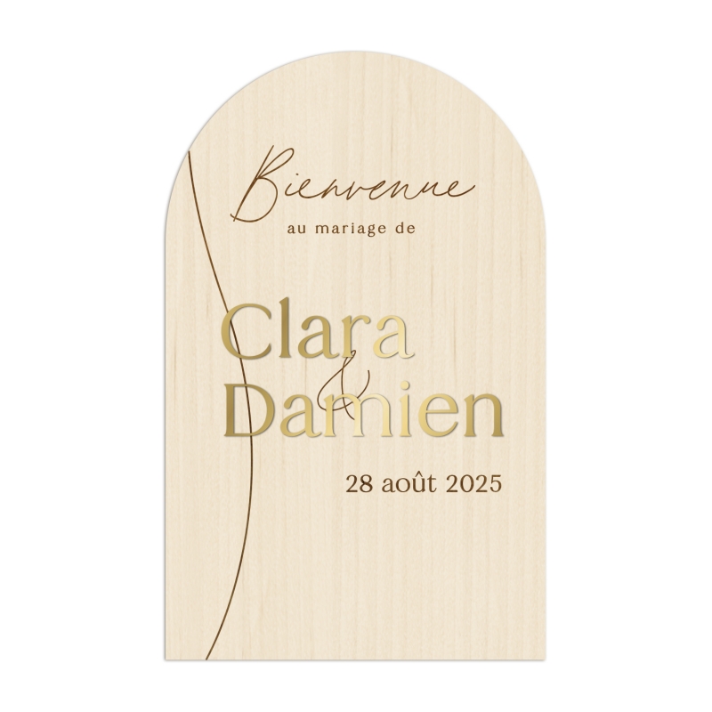 Ajoutez un joli panneau en bois personnalisé à l'entrée de votre lieu de cérémonie et/ou de réception de mariage. Le modèle Line vous plaira pour sa sobriété, son jeu de typographies modernes et son application de plexiglas sur vos prénoms. Un mélange moderne et élégant à la fois !