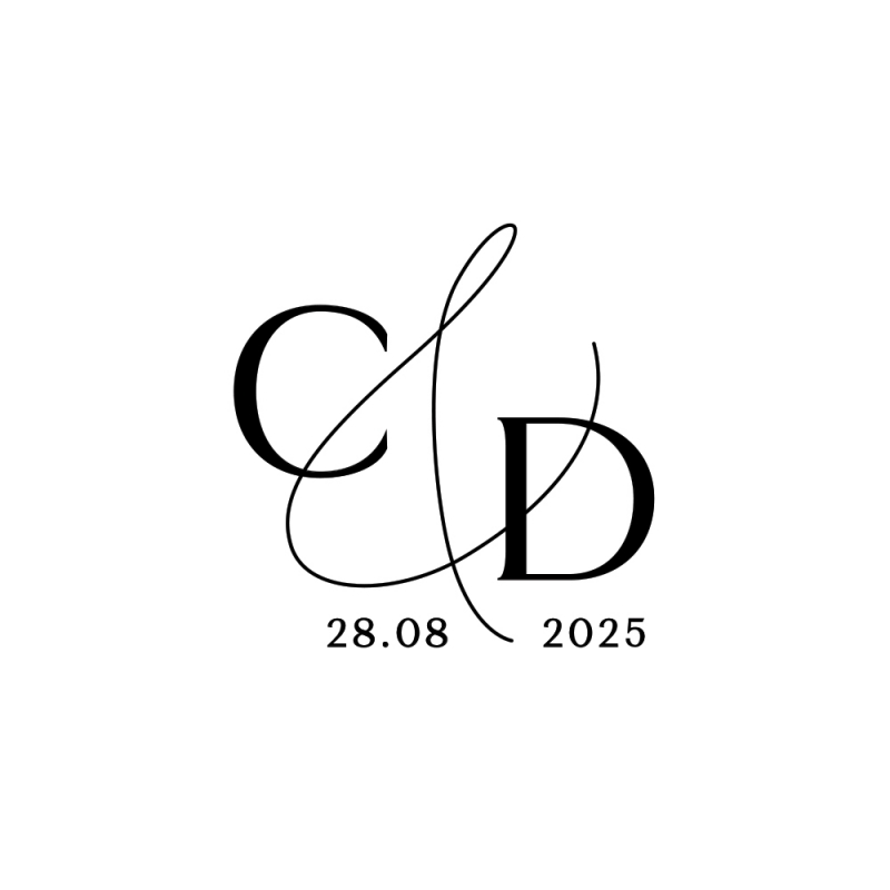 Joli logo de mariés réalisé en tampon encreur, parfait pour personnaliser tous vos supports de mariage ! Que ce soit les enveloppes de vos faire-part, les cadeaux d'invités ou des pochons cadeaux. Ce modèle reprenant vos initiales et la date de votre mariage sera parfait pour un mariage moderne et minimaliste.