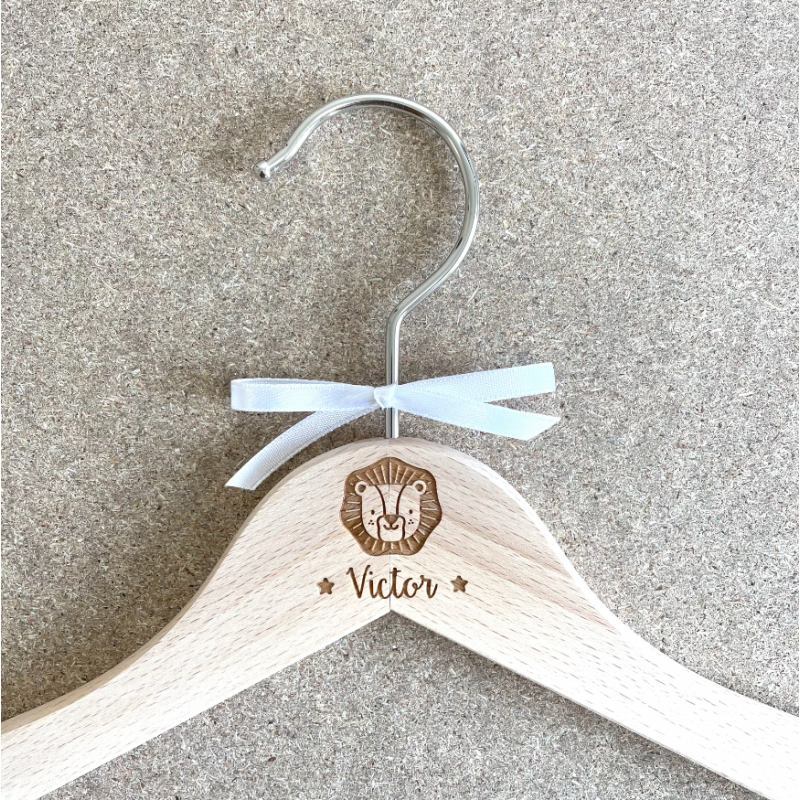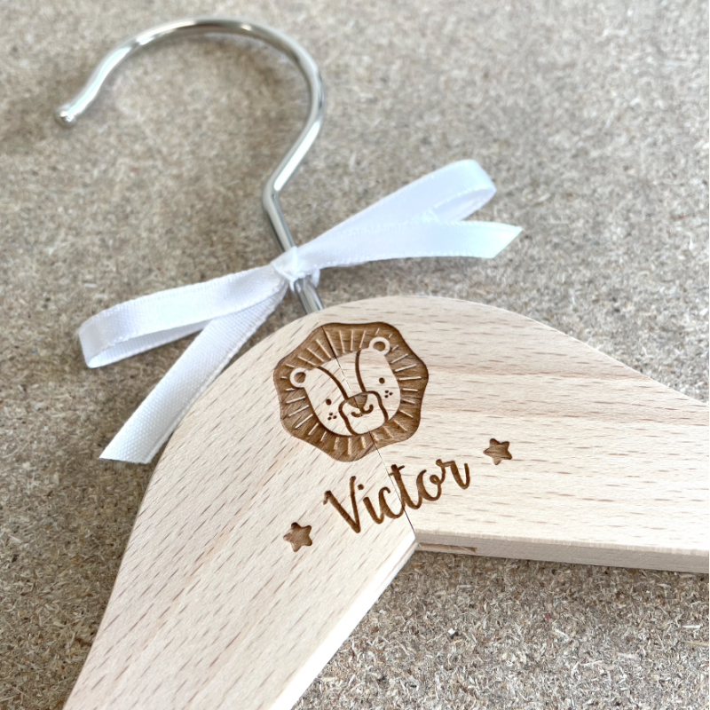 La commande comprend la gravure du cintre enfant avec les textes de votre choix.