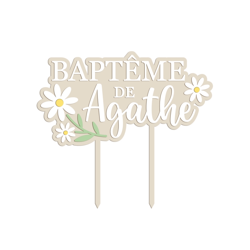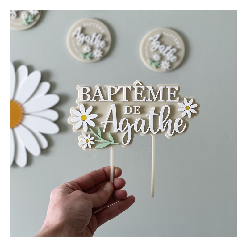Cake topper personnalisé baptême Marguerite - Print Your Love
