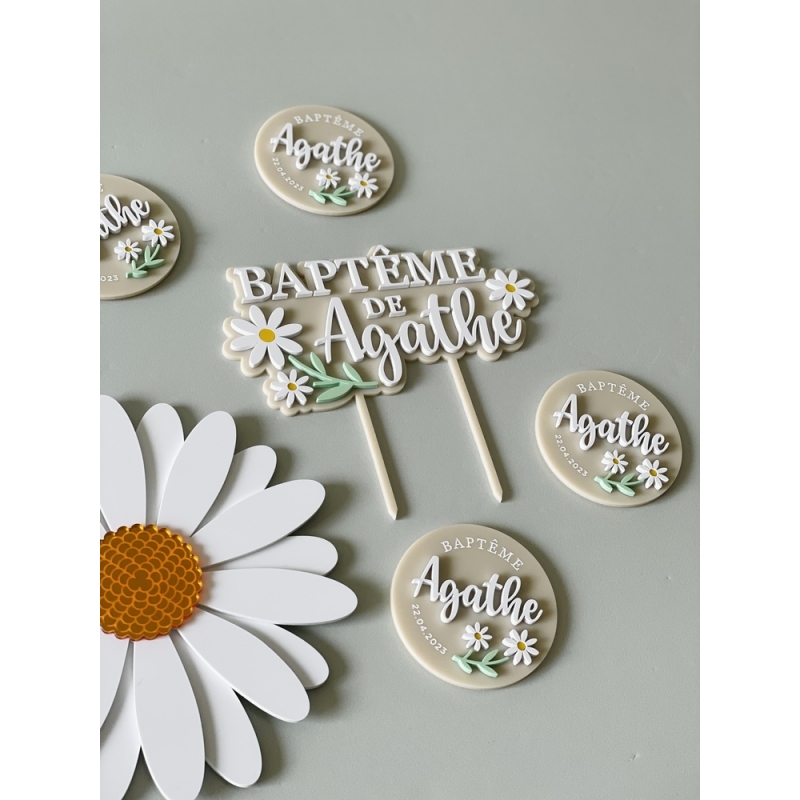 Vous allez adorer ce joli magnet rond en plexiglas illustré de marguerites et personnalisé du prénom de l'enfant. Un cadeau unique et original à offrir à vos proches lors d'un anniversaire ou d'un baptême.