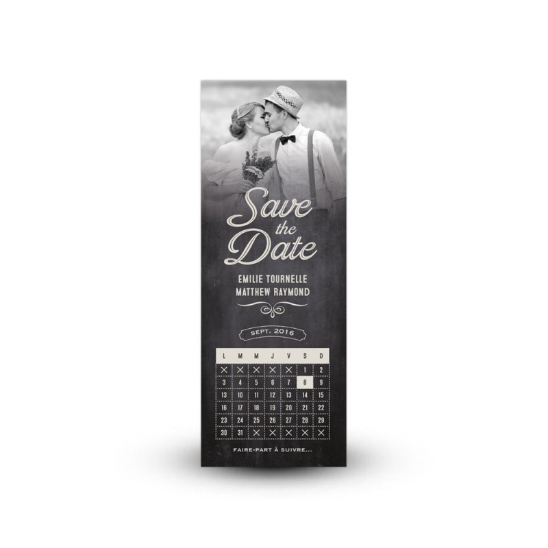 Save the date photo à personnaliser fond ardoise - Mariage vintage