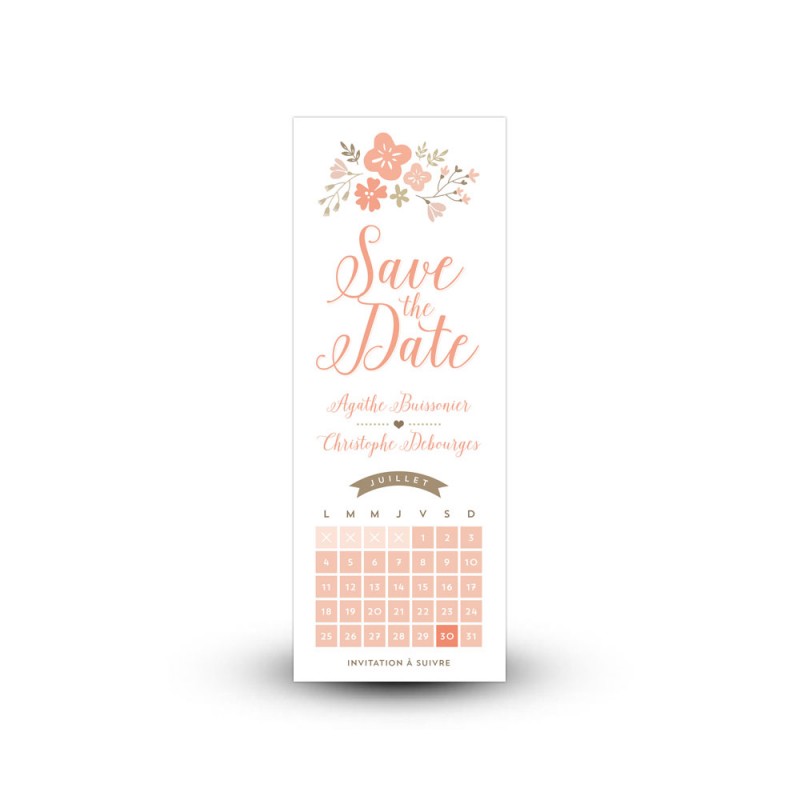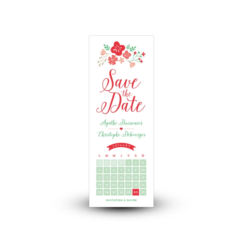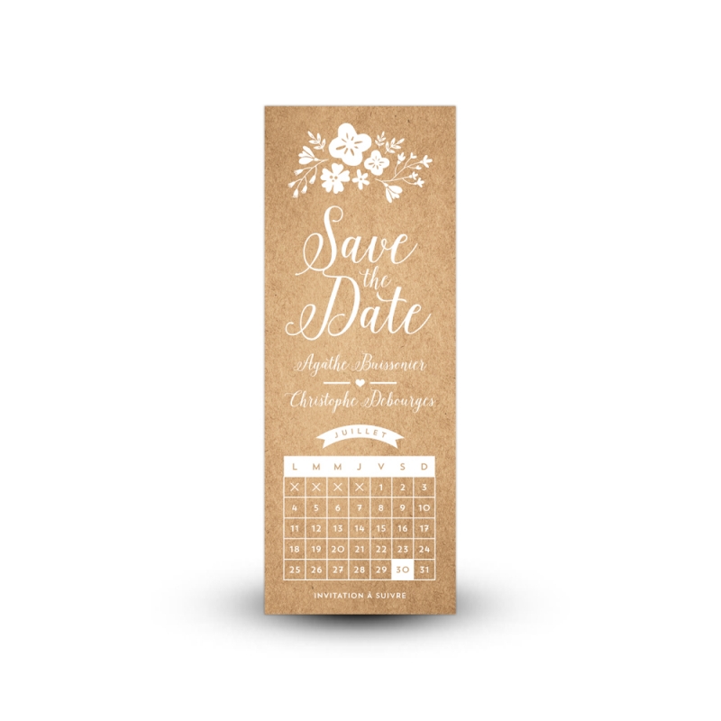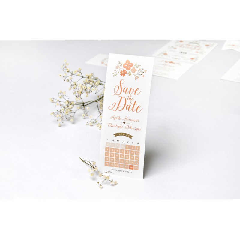 Vous vous mariez bientôt et vous cherchez un save the date fleuri et original pour annoncer votre mariage à vos proches ? Optez pour ce save the date calendrier au style champêtre qui dévoilera la date de votre joli jour tout en gaieté.