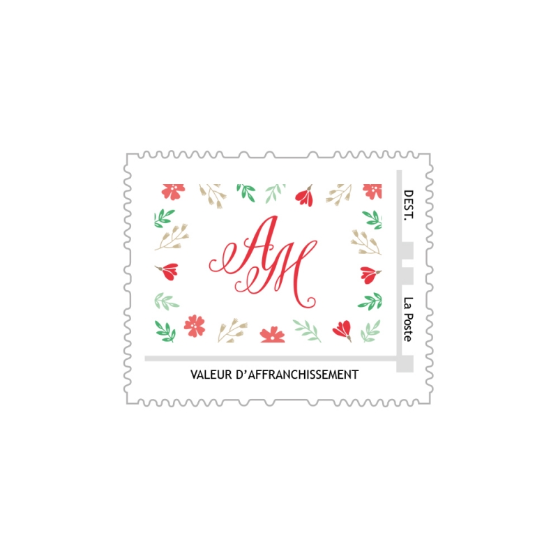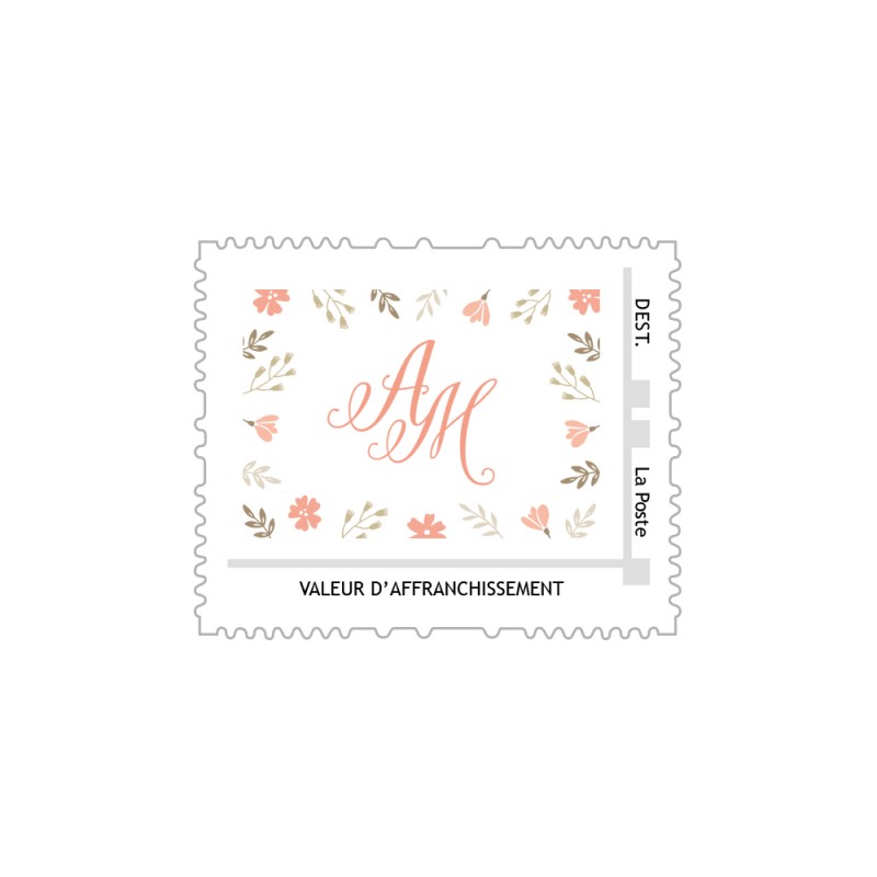 Timbre poste personnalisé avec vos initiales - Mariage champêtre