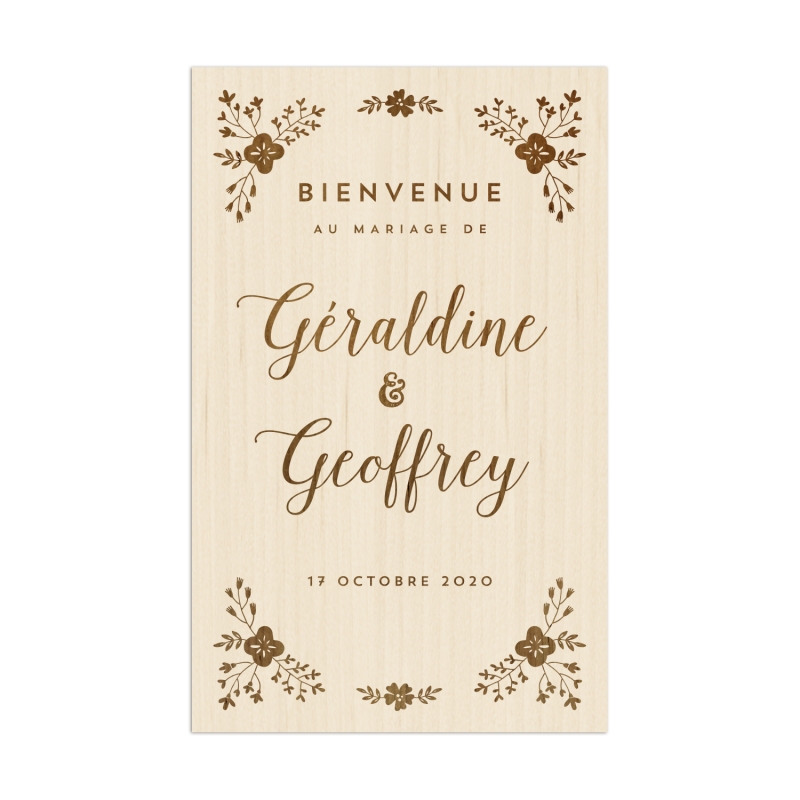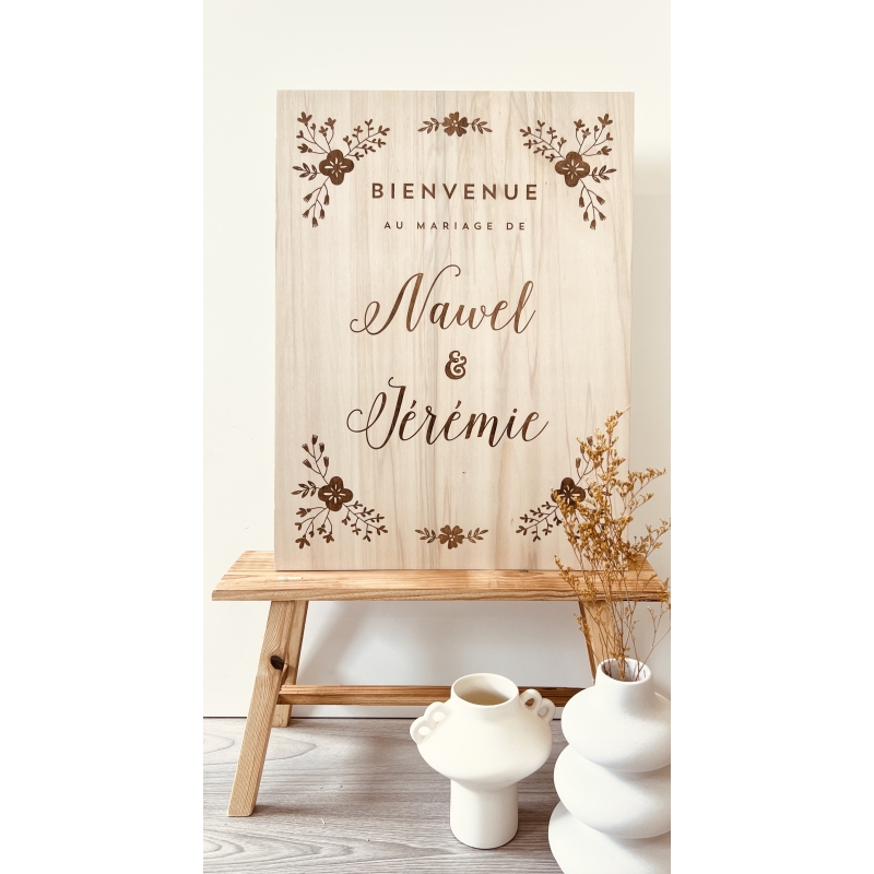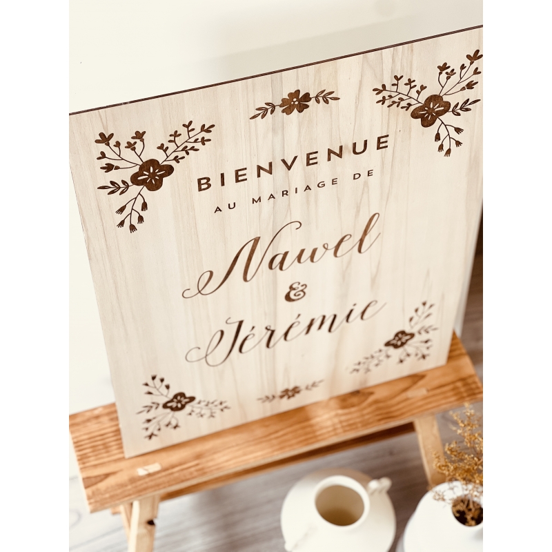 Décorez l'entrée de votre lieu de cérémonie ou de réception avec ce joli panneau de bienvenue en bois. Vous pouvez le personnaliser avec vos prénoms et la date de votre mariage. Après votre union, il sera également un joli élément de décoration que vous pourrez conserver chez vous en souvenir.