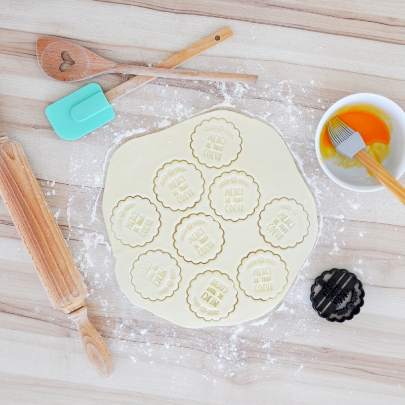 Pour votre mariage, choisissez des cadeaux d'invités originaux et personnalisés. Grâce à ce tampon à biscuits, vous pourrez réaliser vous-même des sablés avec vos initiales. Ces petites gourmandises home made plairont à coup sûr à vos convives !