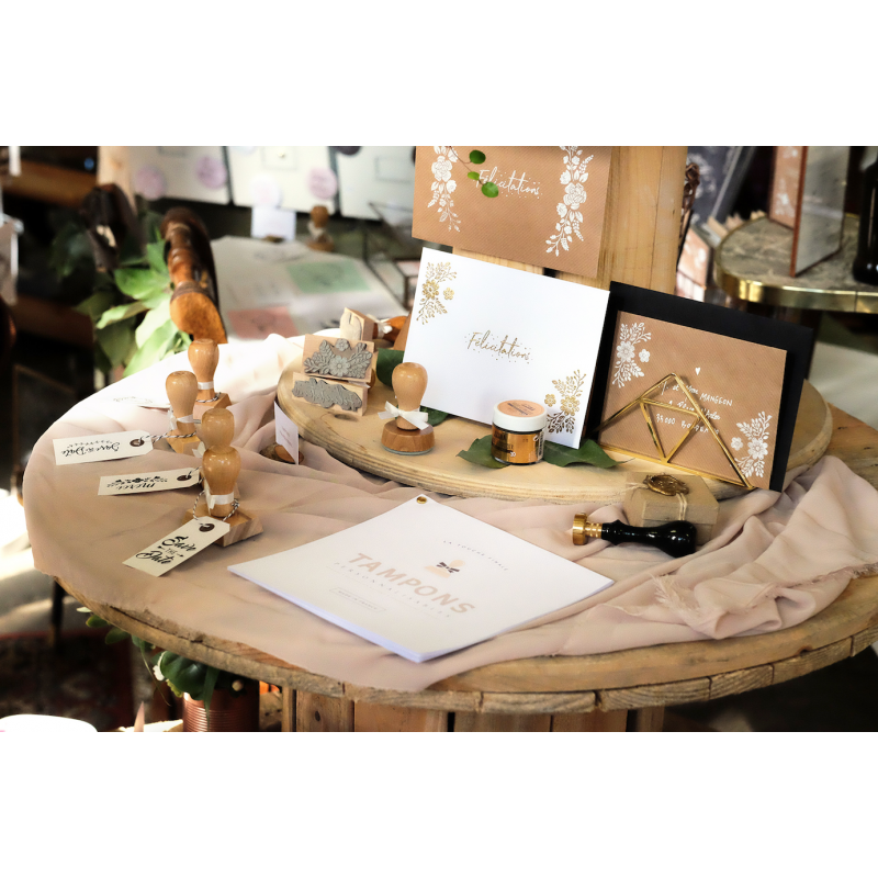 Décorez les enveloppes de vos invitations grâce à ce tampon en bois. Son motif de fleur champêtre donnera du cachet à votre courrier et plongera vos invités directement dans votre thème.