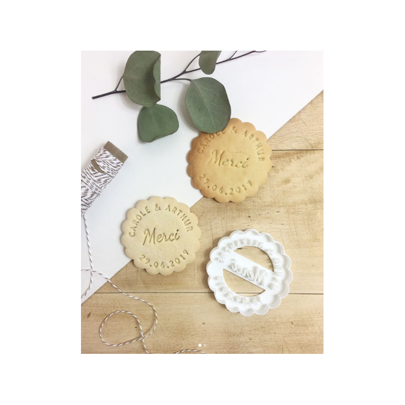 La commande de l’emporte-pièce comprend la personnalisation de vos prénoms et de votre date, ainsi que sa fabrication.