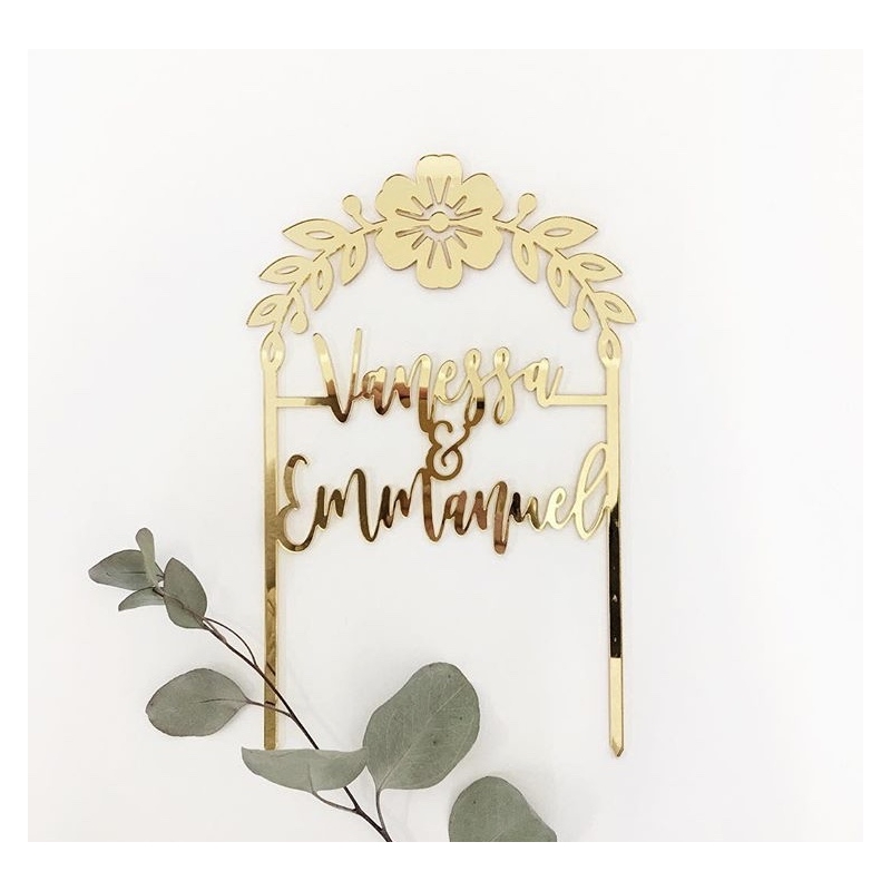 Mariage cake topper personnalisé couronne fleurie - Print Your Love