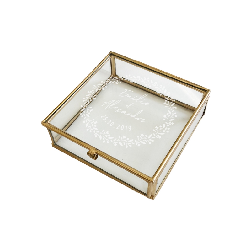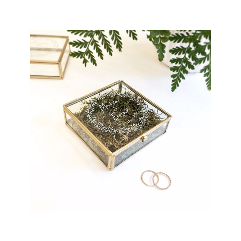 Boîte à alliances carrée en verre personnalisée - Print Your Love