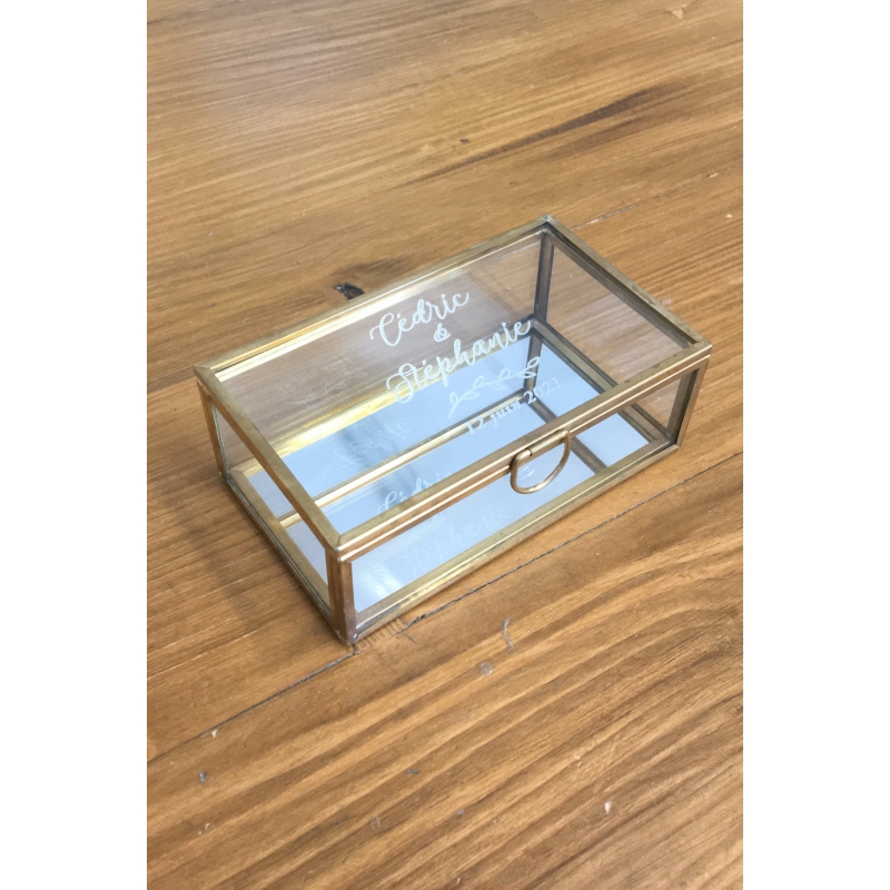 Boîte à alliances personnalisée verre et métal doré - Print Your Love