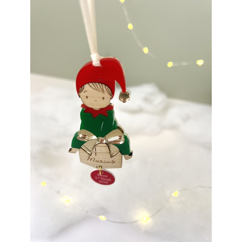 Pour Noël, ajoutez de la couleur et de la magie dans votre sapin grâce à cette boule de Noël personnalisée en forme de lutin et son cadeau. On craque complètement pour son joli minois et ses couleurs qui rappellent les traditions de Noël. Sur le cadeau, ajoutez un prénom pour en faire une décoration de sapin unique !