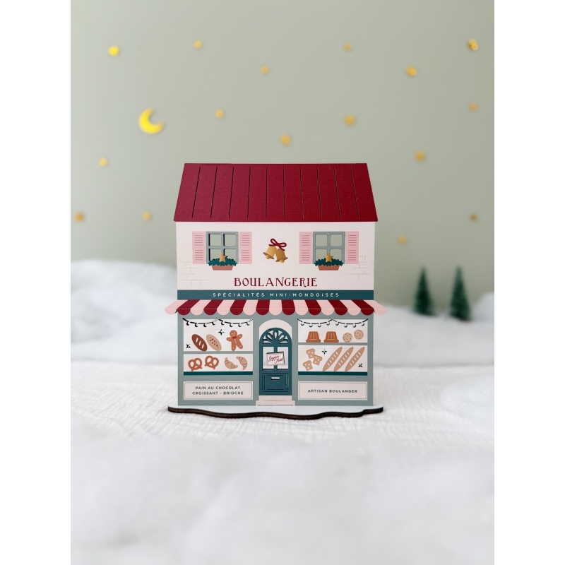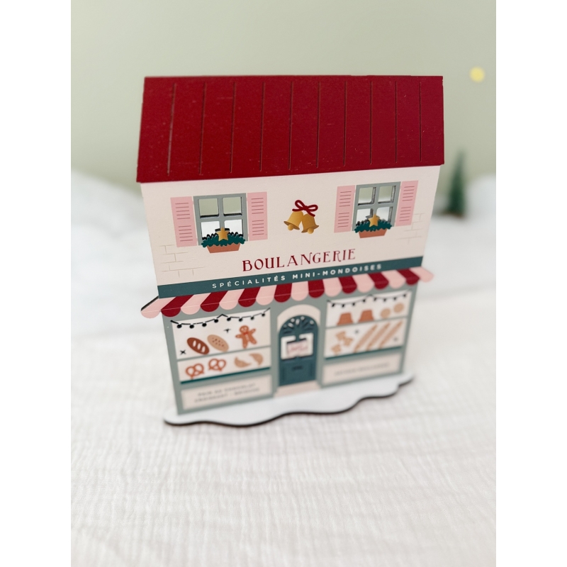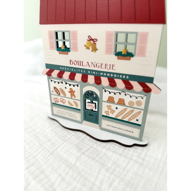 La Boulangerie de Noël a été imaginée, fabriquée et assemblée dans notre petit atelier alsacien. Elle vous sera livrée montée, il vous suffira de rajouter le socle blanc pour la faire tenir debout.