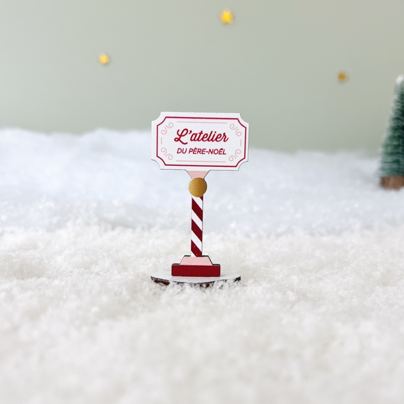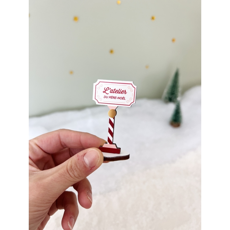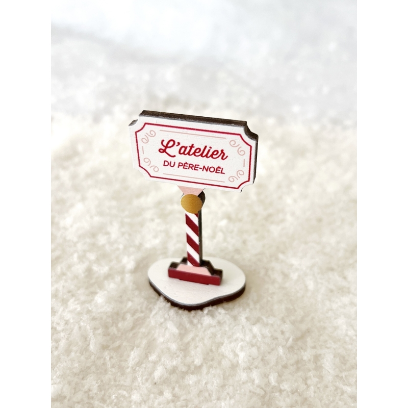 Panneau d’entrée en bois avec l’inscription "L’atelier du Père Noël", idéal pour enrichir votre Mini monde de Noël en bois. Réalisé en bois peuplier, il apporte une note chaleureuse et authentique à votre décor. À associer à l'Atelier du Père Noël, à son légendaire traîneau et au Père Noël pour recréer toute la magie des fêtes dans une ambiance artisanale et conviviale.