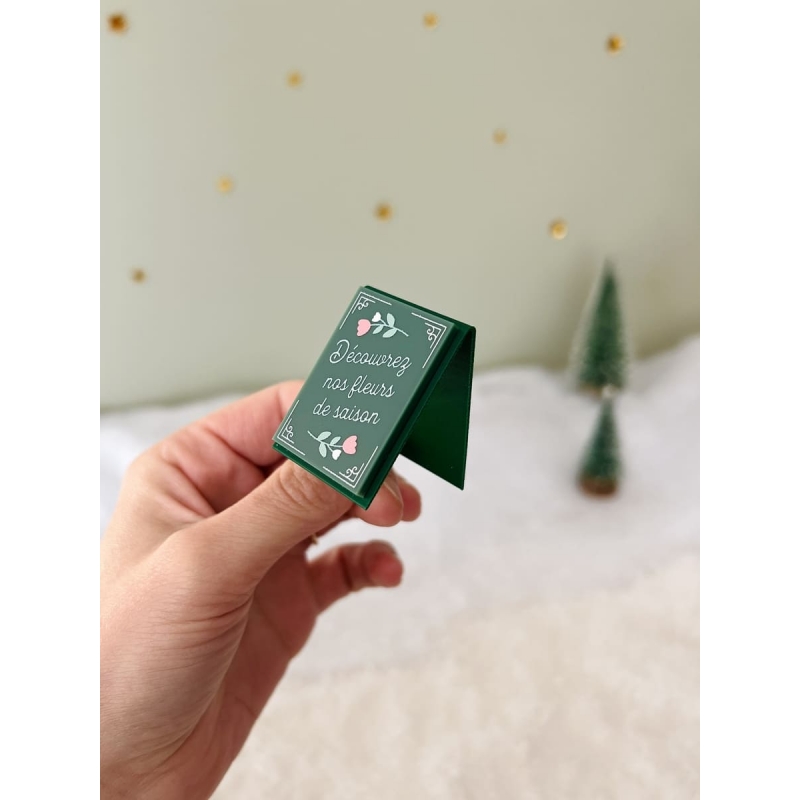 Apportez une touche de détail et de charme à votre village de Noël avec le panneau du fleuriste. Composé d’un socle en PLA et d’une plaque en plexiglas, il complète à merveille le décor du fleuriste miniature du Mini monde, invitant les visiteurs à découvrir les bouquets hivernaux et les jolies créations florales de saison.