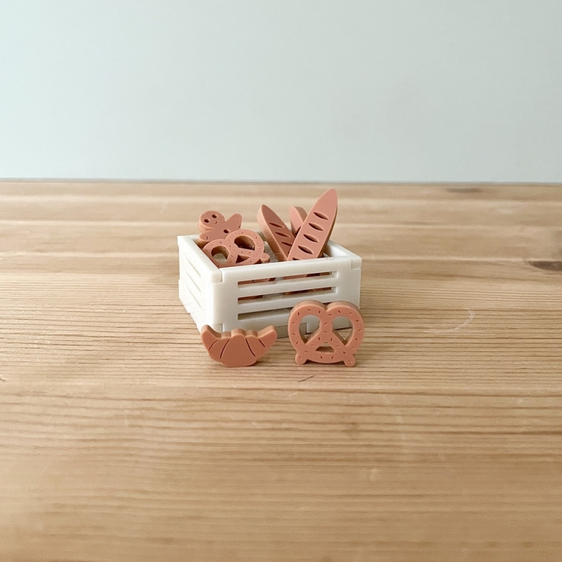 Agrémentez votre Mini monde de Noël grâce à des accessoires originaux. Ils ajouteront de la vie et des détails à votre décor de Noël. La cagette de viennoiseries est composée de 2 croissants, 2 bretzels, 3 baguettes et 1 manala en plexiglas terracotta. Parfait pour mettre devant une maison, la boulangerie ou à côté du chariot de gourmandises de Noël.