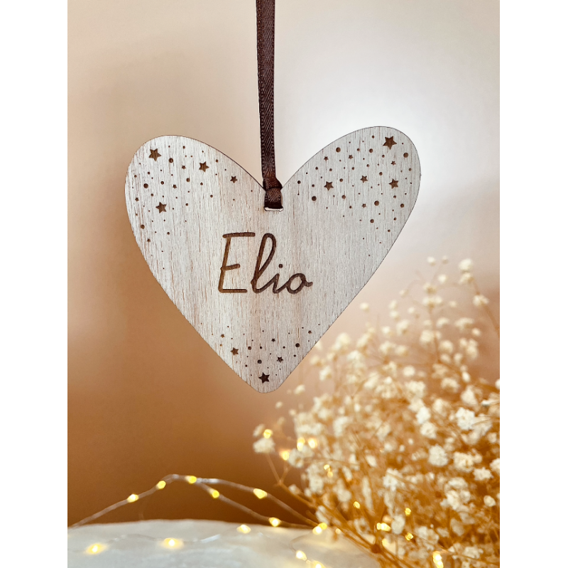 Décoration originale issue de la collection "Mon coeur" de la marque française Mon Petit Léon. Une collection iconique qui célèbre la famille, l'amour, la vie ! Cette décoration en forme de joli coeur étoilé, qui, devant les lumières de sapin, brillera de mille feux !