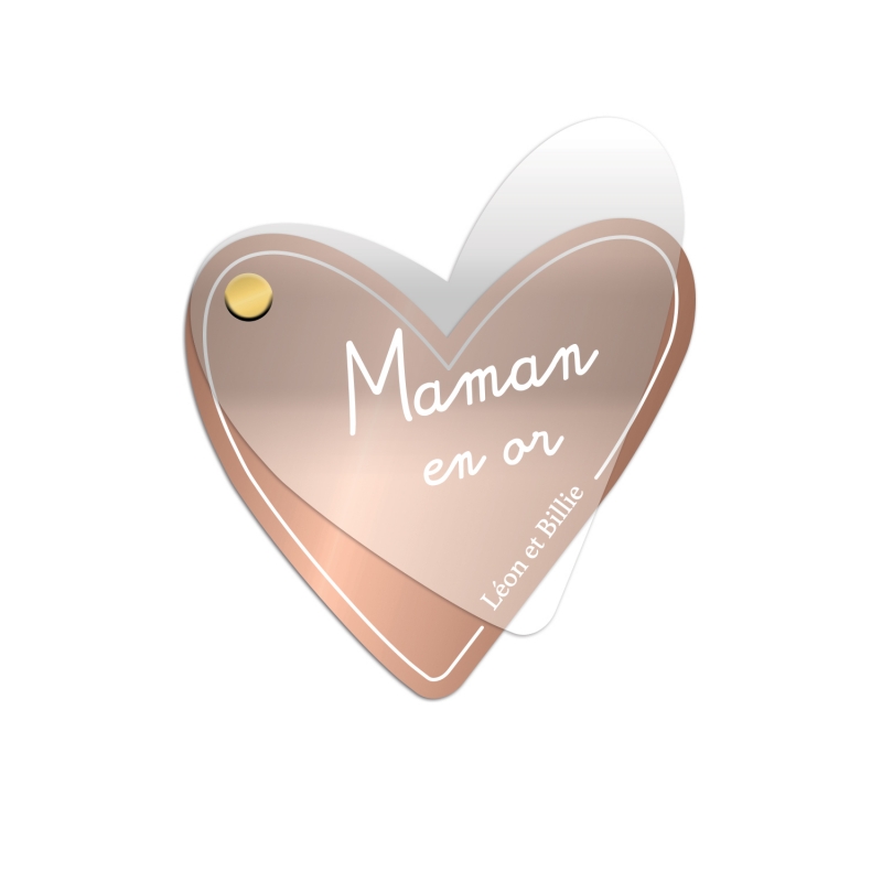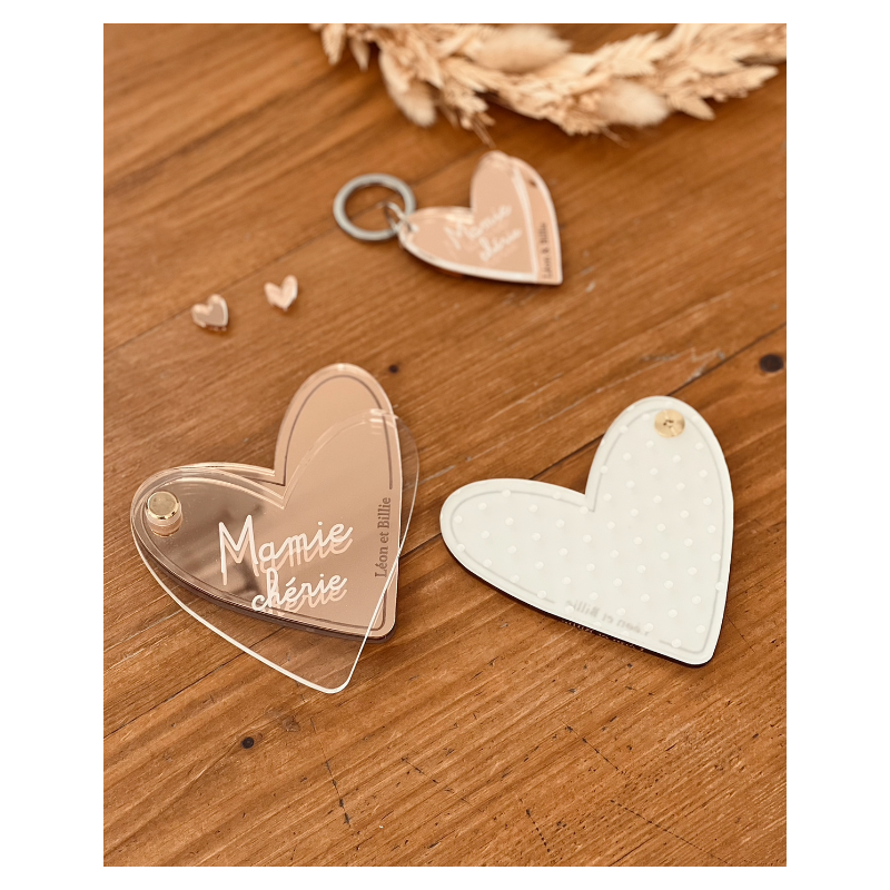 Joli miroir en poche en forme de coeur avec une belle superposition de plexiglas. Tel un grigri porte-bonheur, votre maman pourra l'emmener partout où elle va ! Le ou les prénoms des enfants sont finement gravés sur le plexiglas miroir de couleur or, argent ou rose gold. Un cadeau original et utile parfait pour son anniversaire ou pour la fête des mères !