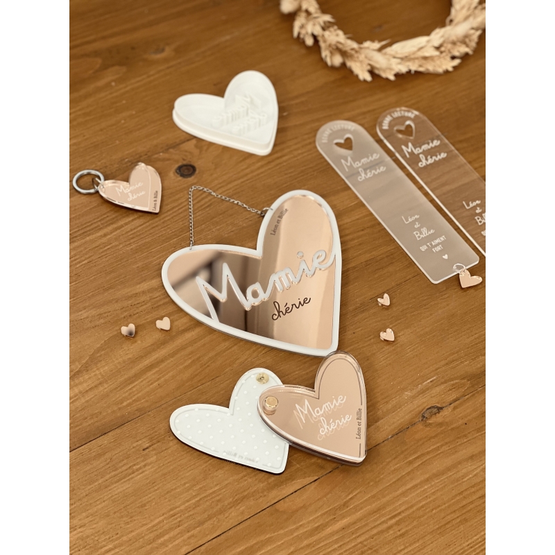 Offrez un joli miroir en forme de coeur à votre maman, une décoration unique et personnalisée avec prénom(s). Le fond de la décoration en miroir or, argent ou rose gold permettra d'accrocher la lumière afin de mettre en évidence le mot "Maman". Le petit plus ? Ajoutez le ou les prénoms du ou des enfants pour le rendre 100% unique !