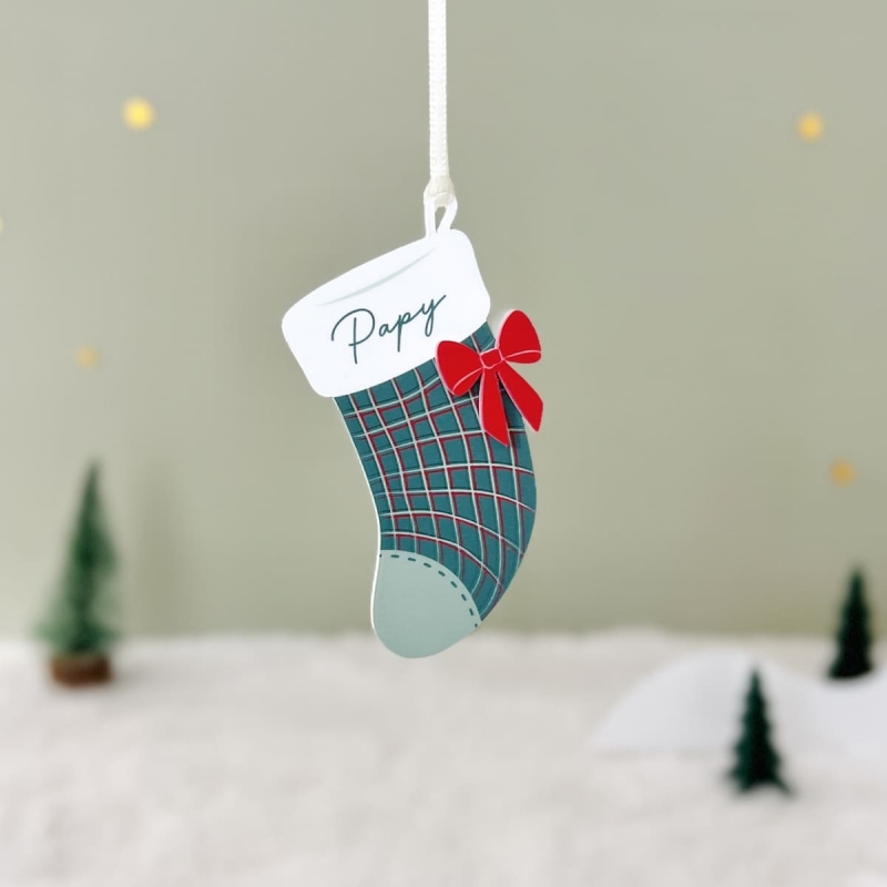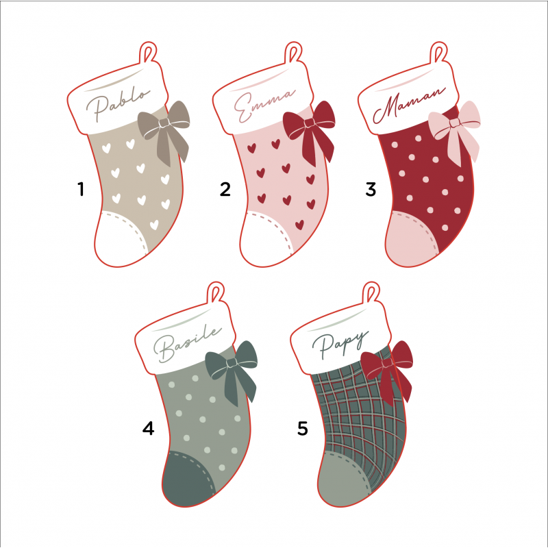 Pour Noël, décorez votre sapin avec des suspensions colorées et personnalisées pour toute la famille ! Chaque chaussette représente un membre de la famille, vous choisissez un motif, le coloris et indiquez son prénom pour un rendu unique et haut en couleurs !
