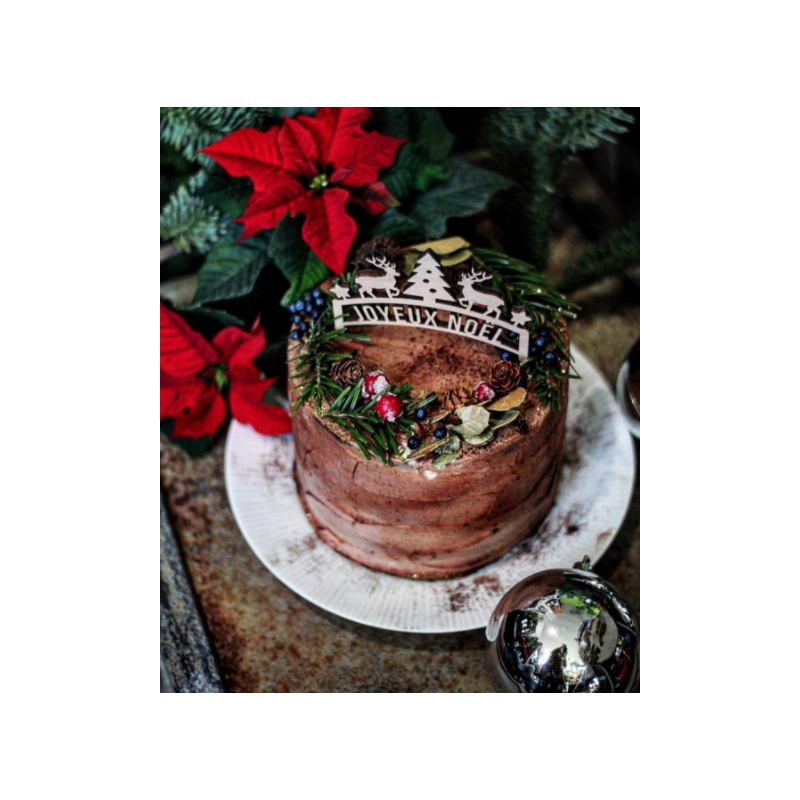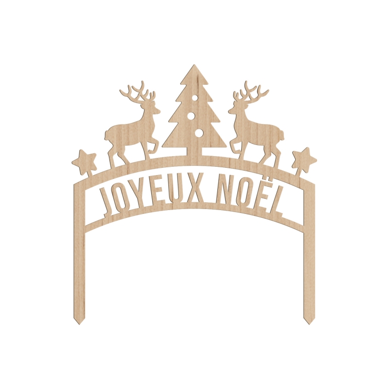 Cake topper en bois Joyeux Noël cerfs - Décoration de bûche de Noël