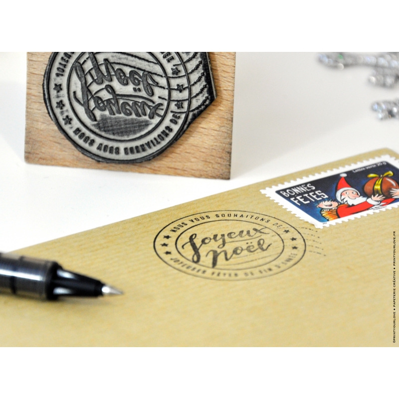 Que vous soyez professionnel ou particulier, souhaitez de bonnes fêtes de fin d'année autour de vous grâce à ce tampon encreur. Professionnel, habillez vos colis grâce à ce modèle de tampon timbre poste, vos clients seront ravies de cette petite attention ! Particulier, vous allez adorer personnaliser vos cadeaux avec ce modèle original et vintage.