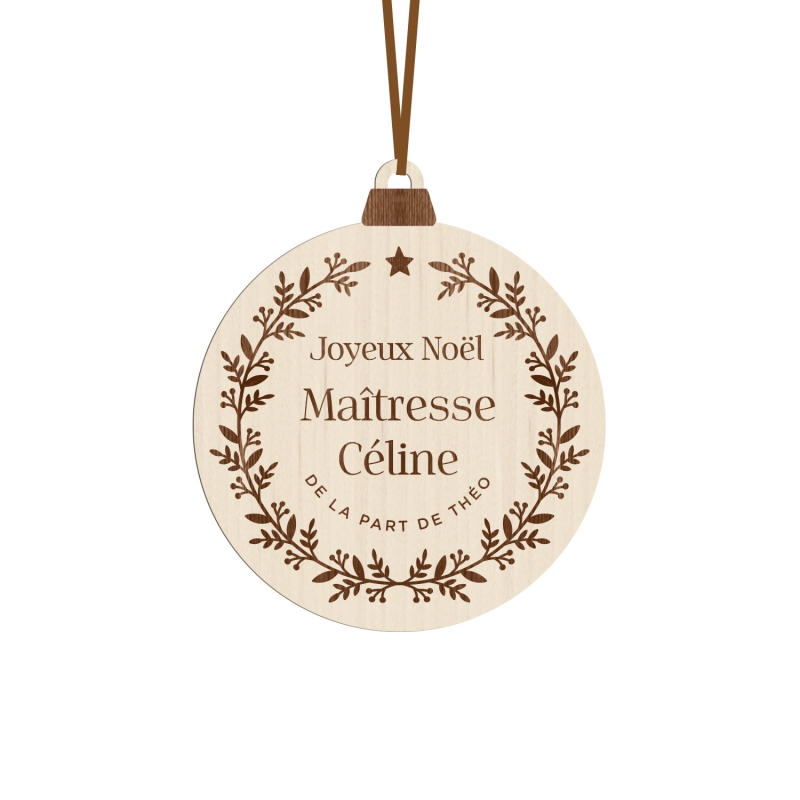 Vous cherchez un cadeau de Noël original et personnalisé pour la maîtresse ou le maître de votre enfant ? Cette boule de Noël sera parfaite ! Vous pouvez également l'offrir à la nounou de votre enfant ou son atsem, la boule de Noël est entièrement personnalisable.