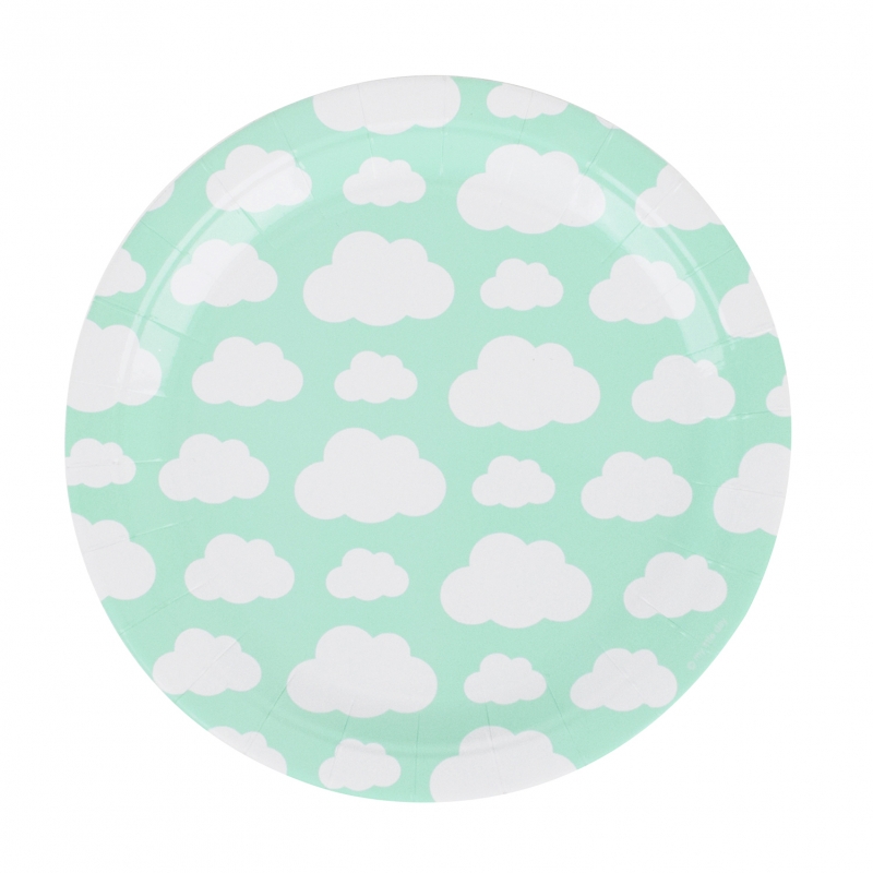 Assiette en carton petits nuages couleur vert menthe Agrandir l'image