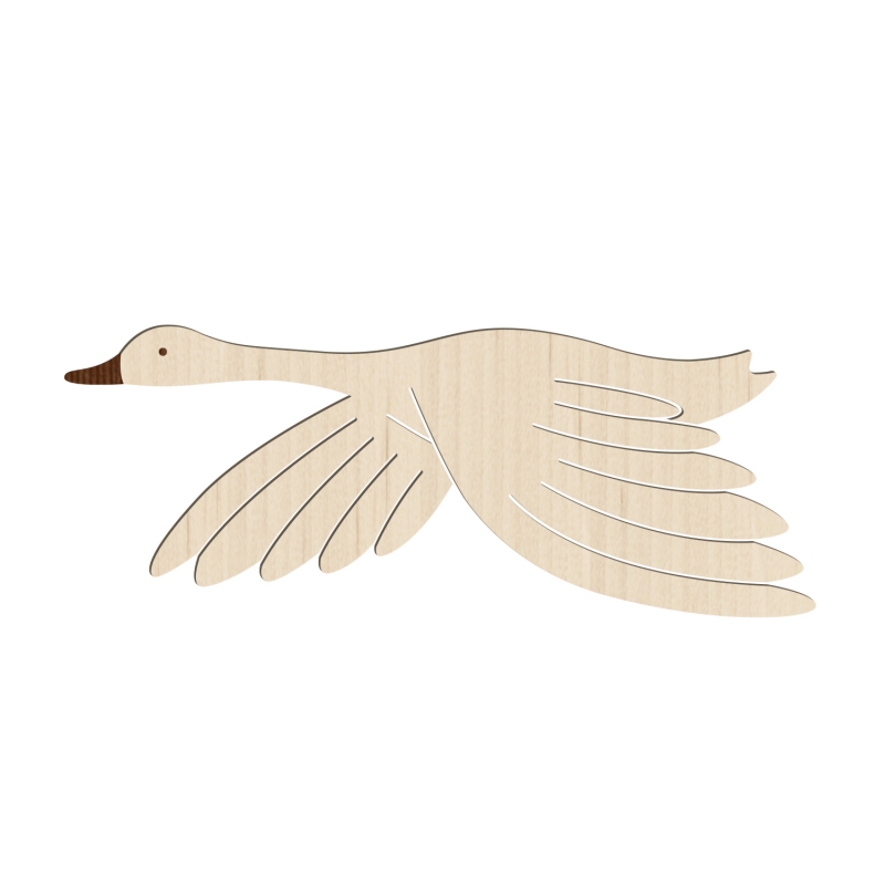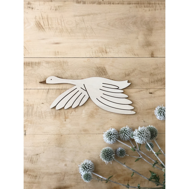Décorez votre intérieur de manière poétique et douce avec cette jolie oie en plein vol. Découpée en bois peuplier et finement gravée, elle s'adaptera parfaitement à votre décoration. Vous pouvez choisir de la prendre à l'unité ou de l'associer avec d'autres oies afin de créer une envolée d'oies sauvages sur votre mur.