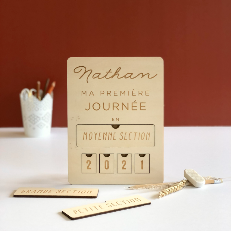 Grâce aux cartes interchangeables, vous pourrez réutiliser la pancarte à chaque rentrée scolaire et ainsi garder un souvenir de sa première journée de classe.