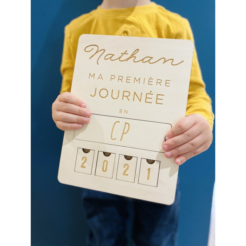 Pour la rentrée scolaire, prenez une jolie photo de votre enfant avec cette pancarte en bois. Elle est personnalisable avec le prénom de votre enfant, la classe, ainsi que l'année.