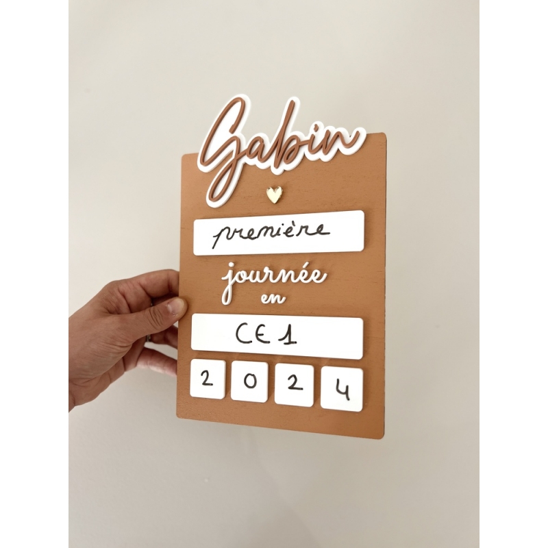 Avec son ton délicat, cette pancarte rose poudré personnalisée est parfaite pour photographier les rentrées d’école en toute douceur. Un modèle pratique et réutilisable.