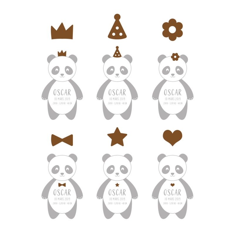 Vous allez adorer cette jolie décoration en bois en forme de petit panda. Il est personnalisable avec le prénom de l'enfant et le texte de votre choix, que ce soit pour une naissance, un anniversaire ou un baptême. Trois formats sont disponibles pour s'adapter à vos envies !