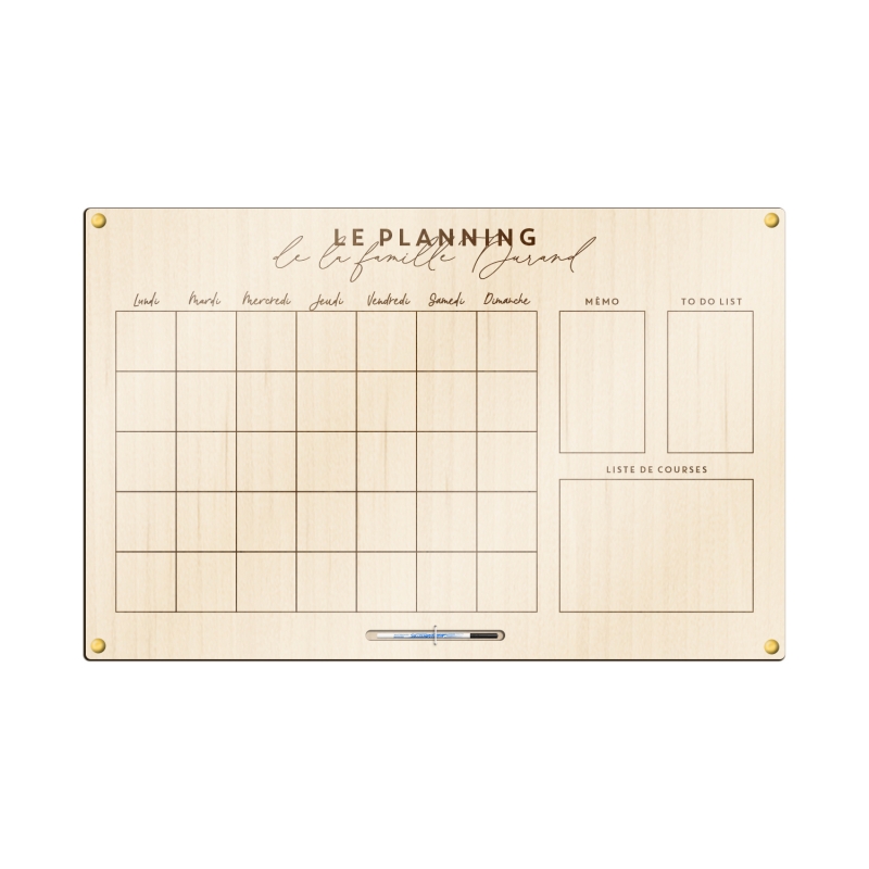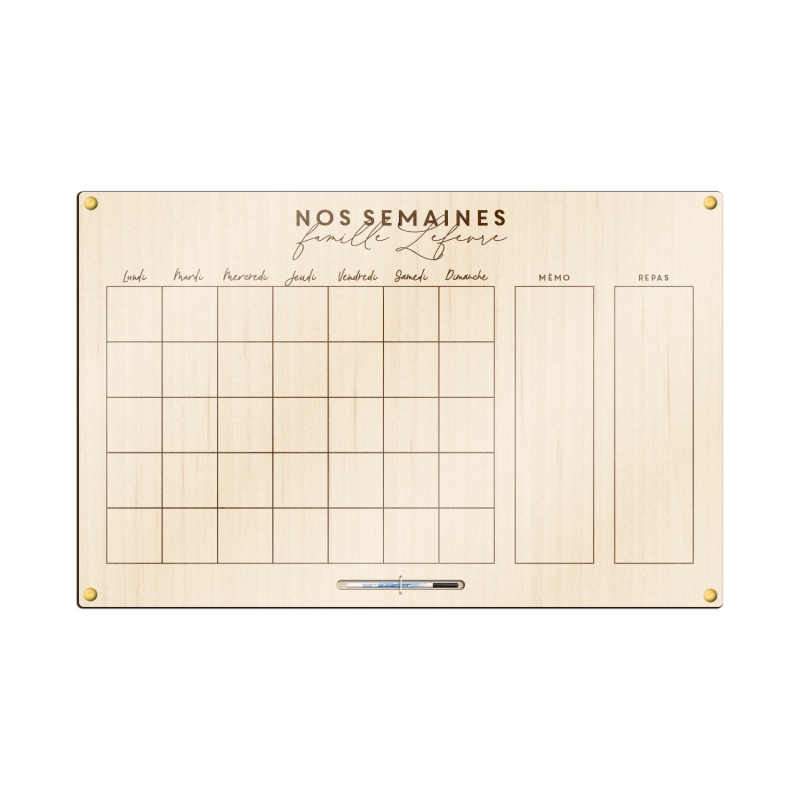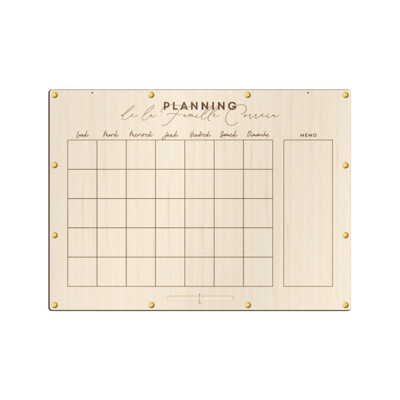 Chaque planning est réalisé sur-mesure selon les options sélectionnées dans le menu déroulant et selon les informations fournies par vos soins. Ainsi, chaque tableau en bois aura une dimension différente, à savoir :