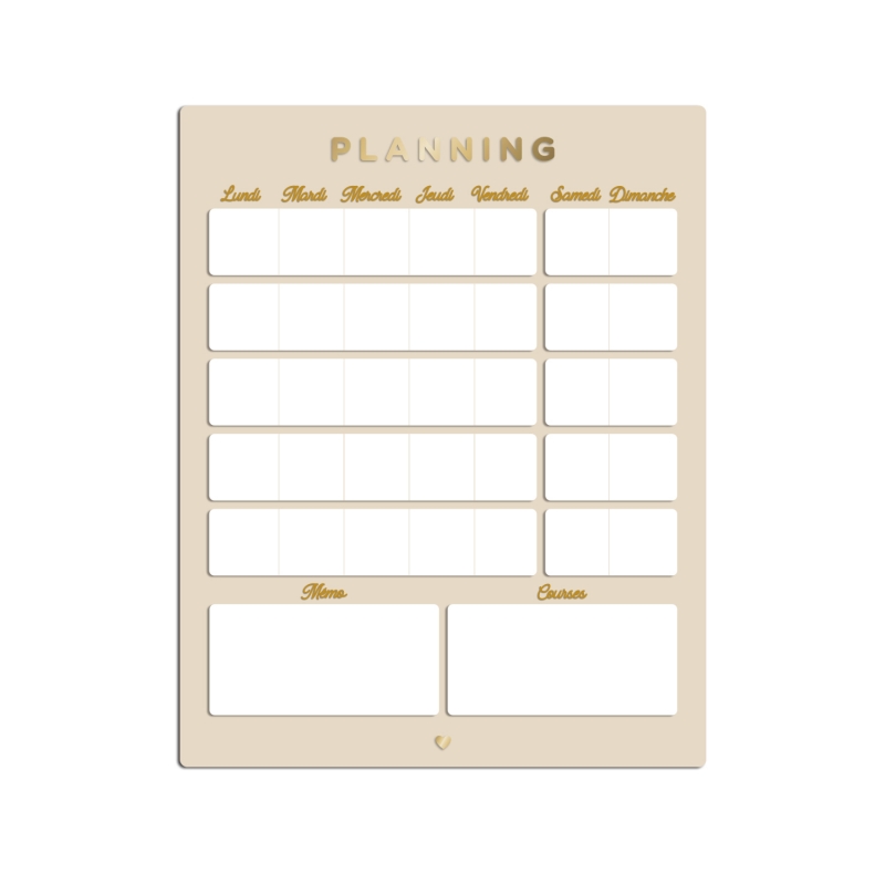 Optez pour notre planning mensuel en plexiglas, effaçable et réutilisable à l'infini. Idéal pour coordonner les activités familiales et les rendez-vous, il combine fonctionnalité et esthétique pour une maison bien organisée. Parfait pour une gestion simplifiée du planning de toute la famille !