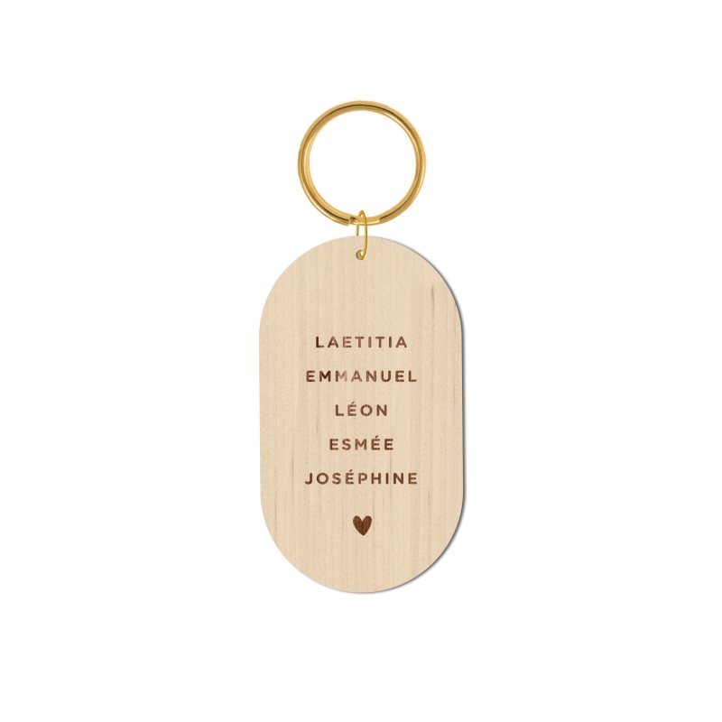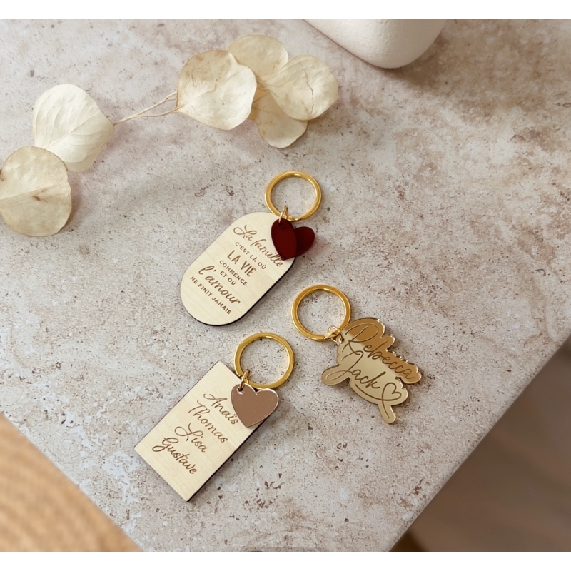 La commande du porte-clé comprend la personnalisation au verso des prénoms de votre choix (2 à 8 prénoms), ainsi que sa fabrication.