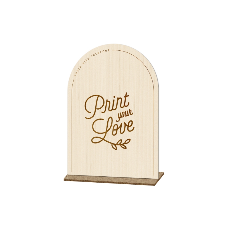 Joli présentoir en bois à personnaliser avec le logo de votre marque et votre site Internet. Grâce à son socle en bois ou en plexiglas miroir, vous pourrez faire tenir le panneau debout, sans avoir besoin d'un support. Ce présentoir en bois sobre et élégant sera parfait pour votre showroom ou à emmener sur des salons professionnels.