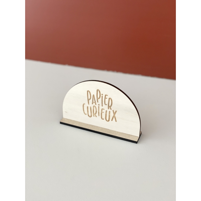 Petit présentoir en bois à personnaliser avec le logo de votre entreprise et votre site. Grâce à son socle en bois ou en plexiglas miroir, vous pourrez le faire tenir debout, sans avoir besoin d'un autre support. Ce présentoir en bois sobre et élégant sera parfait pour votre showroom ou à emmener sur des salons professionnels.