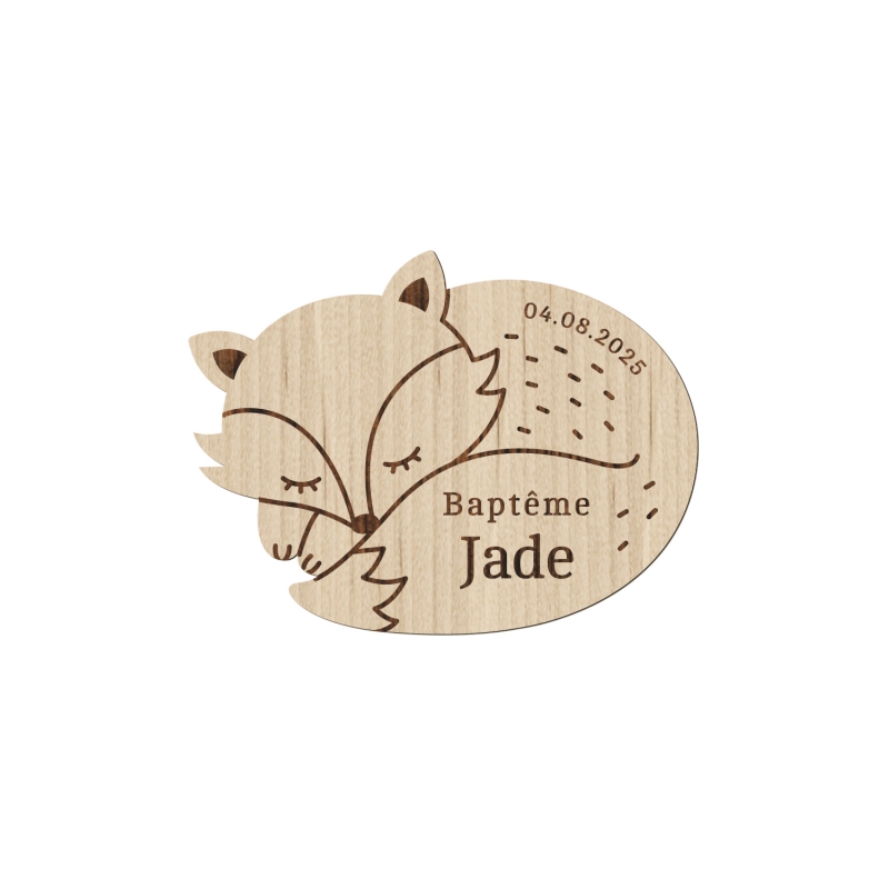 Magnet en bois personnalisé baptême renard endormi - Print Your Love